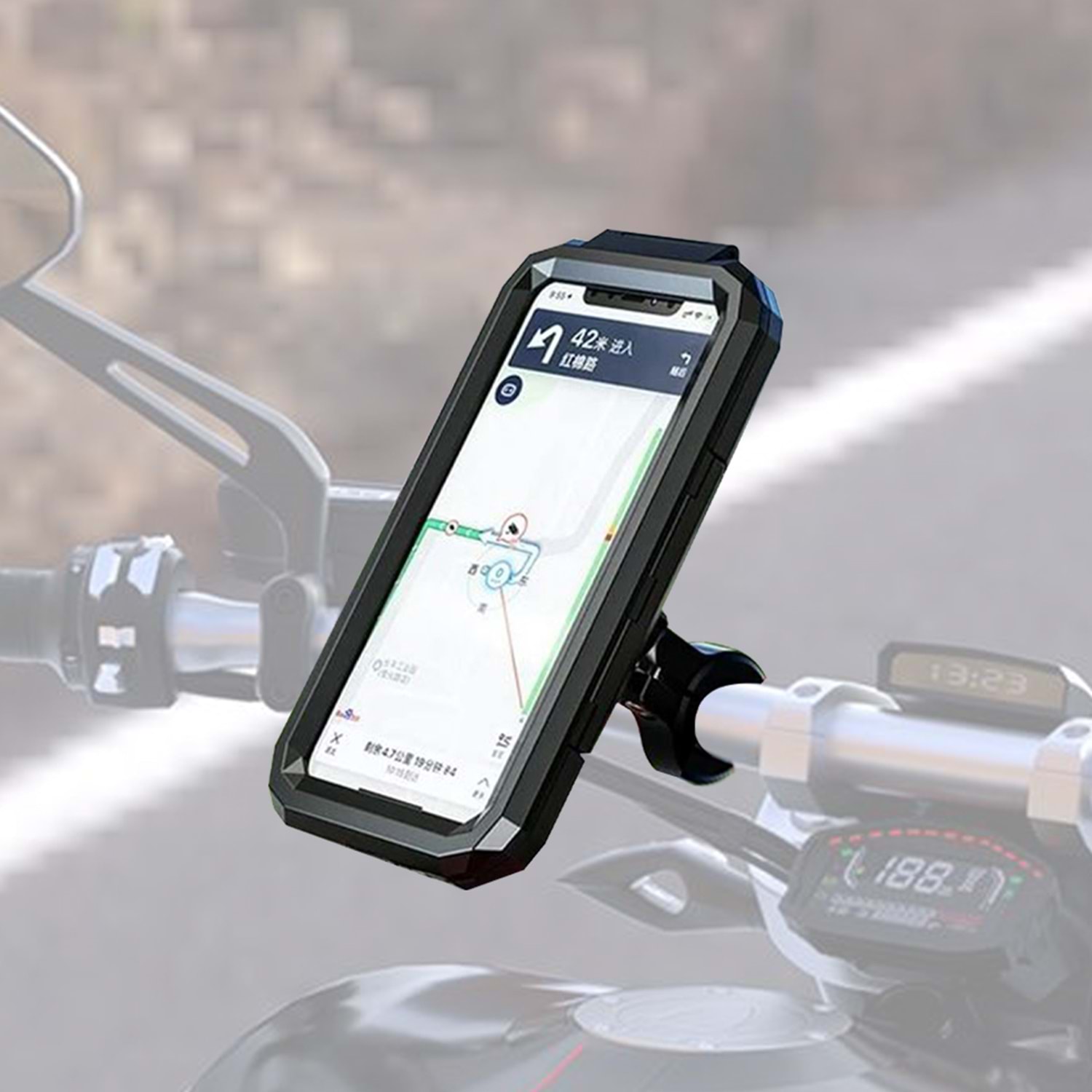 5 Maddede Knmaster TT-950: Tüm motosikletlere uyumlu: Her model motosiklet ve bisiklete kolayca monte edilebilir. Yatay ve dikey kullanım: Ayarlanabilir top ile her açıdan kullanım. Titreşim önleyici modül desteği: Yüksek şok emilimi sağlayarak titreşimden korur. Koruyucu kılıf özelliği: Su geçirmez koruyucu kılıf ile telefonunuzu her türlü hava koşulunda kullanabilirsiniz. 24 ay Knmaster garantisi: Dayanıklılığı ve uzun ömürlü yapısı ile güvence altındadır. Ürün Açıklaması: Knmaster TT-950, motosiklet sürücüleri için ideal bir telefon tutucu olarak tasarlanmıştır. Ürünün en dikkat çeken özelliği, titreşim önleyici modülü ile sürüş esnasında telefonunuzu sabit tutarak yüksek derecede şok emilimi sağlamasıdır. Bu özellik, telefonunuzun sürüş sırasında oluşan titreşimlerden minimum derecede etkilenmesini ve cihazınızın güvenli bir şekilde kullanılmasını sağlar. Ayarlanabilir topu sayesinde telefonunuzu hem dikey hem de yatay pozisyonda kullanabilir, sürüş esnasında navigasyonu rahatça takip edebilirsiniz. Su geçirmez koruyucu kılıf ile telefonunuzu yağmurlu havalarda bile sorunsuz bir şekilde kullanabilirsiniz. Kılıfın yüzeyi, dokunmatik ekranın işlevselliğini etkilemeden koruma sağlar. Ürünün silikon tabanı, telefonunuzu çizilmeye karşı koruyarak daha uzun ömürlü bir kullanım sunar. Ayrıca, yanlarındaki ve altındaki kilitler sayesinde telefonunuzu hızlıca takıp çıkarabilirsiniz. Gidon ve ayna aparatıyla scooter ve diğer motosiklet modellerine de uyum sağlar. Ürün Özellikleri: Marka: Knmaster Ağırlık: Yaklaşık 200g Ambalaj Boyutu: 20,5 cm x 10,5 cm x 7 cm Malzeme: Demir + Alüminyum + Plastik Cep Telefonu Boyutu Uygunluğu: 17 cm - 18 cm Renk: Siyah Paket İçeriği: 1 adet alyan 1 adet gidona sabitleme aparatı 2 adet gidon için boyutlandırıcı 1 adet telefon tutucu 1 adet ayna aparatı 1 adet gidon silikon aparatı 1 adet titreşim önleyici modül