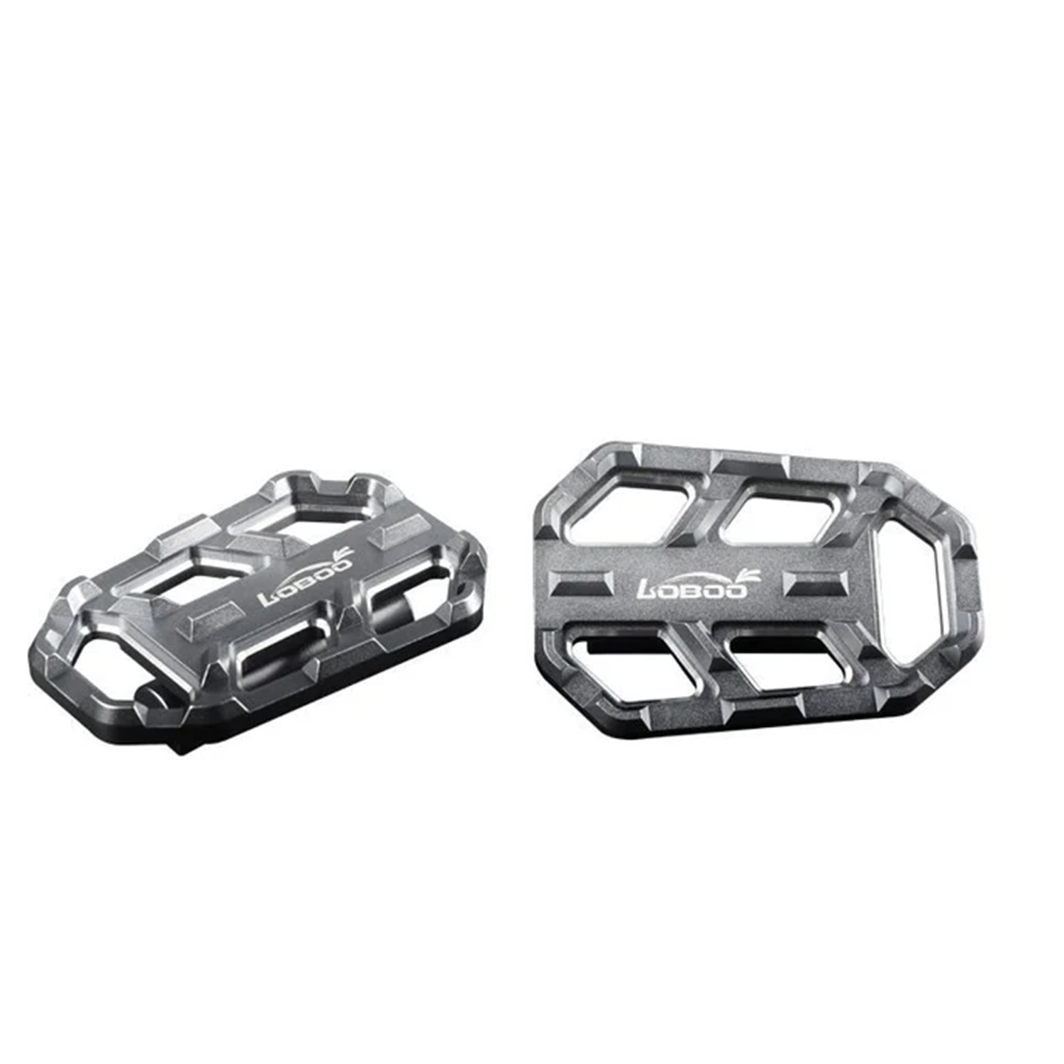 Bu yükseltmenin neden mantıklı bir seçim olduğu Devasa 85 mm genişlik . Boyut önemlidir. Ayak basma alanınızı 85 mm x 60 mm'ye genişletmek, botlarınız için devasa bir hedef alanı sağlar. Dengeyi önemli ölçüde iyileştirir ve ayakta dururken bisikleti kontrol etmek için gereken fiziksel çabayı azaltır. Kaymaz Tırtıklı Kavrama . Önce güvenlik. Yüzey, bot tabanınıza tutunarak, ekipmanınız ıslak veya çamurlu olsa bile kaymayı önleyen özel olarak işlenmiş içbükey-dışbükey bir desene sahiptir. CNC Alüminyum Dayanıklılığı: Yüksek mukavemetli alüminyum alaşımından hassas bir şekilde işlenmiştir. Bunlar ucuz preslenmiş metal parçalar değil; sürücünün ve tam yüklü bir GS'nin ağırlığını taşıyacak şekilde tasarlanmış sağlam, dayanıklı bloklardır. Kolay Montaj. Mekanikçi gerekmez. Tasarım, orijinal ayak dayanaklarınızı çıkarmadan doğrudan takmanıza olanak tanır. Sadece kelepçeleyin, vidaları sıkın ve sürüşe başlayın.