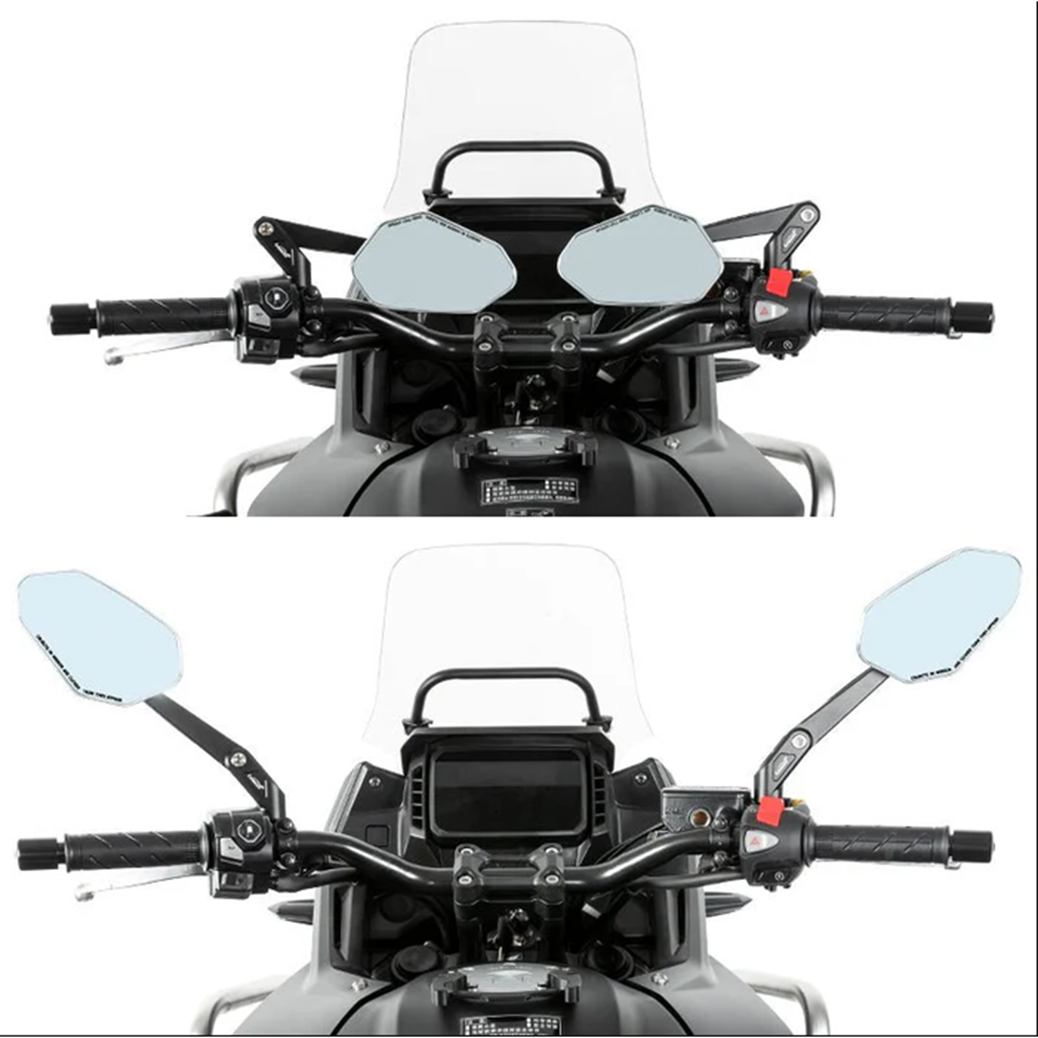 Modern Açısal Tasarım: "Eşkenar dörtgen" şekli, arkada rüzgar kanadı aerodinamik tasarımına sahiptir. Havayı keser ve modern motosikletlerin (özellikle KTM ve Naked motosikletlerin) keskin stiline yuvarlak aynalardan daha iyi uyum sağlar. Katla ve Sakla: Patikada aynalarınızı kırmayın. Çok eklemli kol, aynaları anında içe doğru katlamanıza olanak tanır . Dar patikalarda sürüş veya şehir trafiğinde ilerleme için mükemmeldir. HD Geniş Görüş: Şıklık güvenlikten ödün vermez. Görüş alanınızı %50'den fazla artıran ve arkanızdaki kör noktaları neredeyse tamamen ortadan kaldıran büyük bir küresel dışbükey lens kullanıyoruz. Parlama Önleyici Kaplama: Özel mavi tonlu parlama önleyici kaplamaya sahiptir . Arkadaki araçların göz kamaştırıcı uzun farlarını etkili bir şekilde filtreleyerek gece sürüşlerinde göz yorgunluğunu azaltır. Sağlam CNC İşleme: Plastik titreşimini unutun. Gövdenin tamamı, dayanıklı eloksallı kaplamalı alüminyum alaşımdan CNC ile işlenmiştir . Otoyol hızlarında bile dengesini korur ve üstün bir görünüme sahiptir.